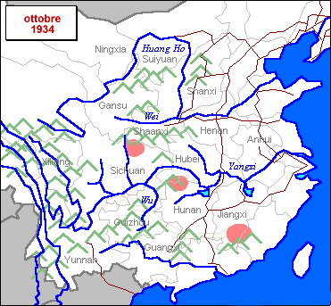 Chiang Kai-shek si rende conto della pericolosità di questa forte base rossa e si propone risolutamente di eliminarla: a metà del 1934
