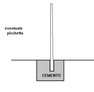 Per fissare la tavola ci possono essere vari sistemi: uno relativamente semplice consiste nel fare un buco quadrato nel terreno e cementare la base, lasciando una cavità al centro per incuneare la tavola quando il cemento è asciutto (in questo modo è facile sostituire la tavola se si rompe). Eventualmente rafforzare incuneando un picchetto fra uno dei bordi della cavità - che quindi dovrà essere un po’ più largo - e la parte di tavola interrata. Fare attenzione alle nervature del legno: la parte più resistente dev’essere sul davanti.