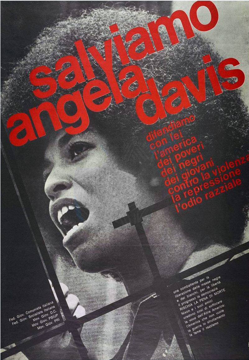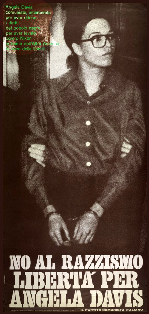 dei bianchi, nel quale in quanto nera si trovava messa in evidenza.L'essere neri non aveva nessuna importanza i per i suoi amici bianchi e liberali, ma il risvolto di questa verità non era meno pesante per lei. Se per i suoi amici essere neri non aveva nessuna importanza ne aveva invece enormemente per lei. A Brandeis si consacrò interamente agli studi, superando l'esame di diploma con il massimo dei voti e il "magna cum laude." Per due anni studiò poi a Parigi alla Sorbona dove incontrò studenti algerini che le parlarono della lotta del loro paese per la liberazione dai colonialismo francese. Ella poté vedere la polizia francese che costantemente arrestava, perquisiva e vessava gli studenti algerini o tutte le persone "dal colorito scuro" sospettate di essere algerine per il solo fatto che volevano l'indipendenza del loro paese. La Davis cominciò i suoi studi di filosofia con il professor Herbert Marcuse che era fuggito dalla Germania in seguito alla persecuzione nazista e attraverso il suo insegnamento scoprì nella filosofia marxista lo strumento metodologico per comprendere l'oppressione di cui sono vittime i neri. Cambiò allora d'orientamento, si preparò al dottorato in filosofia, continuando i suoi studi ad Amburgo all'università Goethe, grazie ad una borsa di studio del governo della Germania Ovest. Contemporaneamente militò nel SDS, gruppo socialista di studenti che organizzava manifestazioni contro la guerra nel Vietnam. Cominciò intanto a lavorare alla sua tesi: Il concetto filosofico di libertà in Kant ed i suoi rapporti con la lotta di liberazione dei neri. Dopo due anni di studi decise di lasciare la Germania, sia per fuggire dalla Germania razzista sia perché le sembrava di tenersi troppo in disparte nella battaglia dei suoi fratelli neri d'America. Ritornò per partecipare a questa battaglia. S'iscrisse all'università di San Diego in California per terminare il suo dottorato con il professor Marcuse. All'università Angela partecipò attivamente alla vita della comunità nera della California del Sud, organizzando la lotta contro la disoccupazione e le brutalità della polizia e lavorando parimenti nel campus per la creazione di un istituto popolare del terzo mondo. Ella si rese conto da quel momento che attività simili non restano a lungo impunite in una società razzista ed oppressiva. L'uccisione per opera della polizia di Los Angeles di Gregory Clark, di diciotto anni, le mostrò ancora una volta i metodi fascisti dei poliziotti dello Stato. Tali metodi divennero moneta corrente nel tentativo di impedire il progresso della lotta per l'uguaglianza e la libertà. In quell'anno, però, doveva ancora vedere tre dei suoi amici abbattuti sul campus di San Diego. Furono giorni di lotta e di pericolo. Partecipare alla lotta non era solo un semplice "impegno intellettuale", significava mettere in gioco la propria vita. Poco dopo Angela aderì al Partito Comunista e divenne un membro attivo del gruppo Che-Lumumba, collettivo del partito comunista di Los Angeles, composto interamente di neri. Certi professori si concedono il lusso di "distrarsi", di giocare con le idee, altri, che prendono il loro compito con serietà, si rifiutano di affermare cose a cui non credono. È il caso di Angela. Ella difese le idee di cui era convinta. Per tali ragioni, dopo essere stata nominata professore di filosofia a San Diego per i corsi del 1969, quando fu denunciata come comunista da un informatore del FBI, ella rispose al consiglio d'amministrazione dell'università della California: "Sì, sono comunista; e non mi servirò della procedura dei cinque emendamenti per proteggermi. Le mie convinzioni politiche non possono accusarmi, esse accusano i Nixon, gli Agnew e i Reagan." E insistette a sottolineare che quegli uomini sono i veri criminali della società, uomini che hanno rubato al popolo le sue ricchezze con lo sfruttamento e l'oppressione. Angela sapeva che, allorché le masse popolari negli Stati Uniti e negli altri paesi mettono sotto processo, tale stato di cose, gli oppressori replicano con un'intensificazione della repressione; facendo di tutto per ridurre al silenzio e possibilmente per sopprimere quelli che prendono posizione e cercano di organizzarsi contro il loro sistema. Ma, a dispetto di ogni circostanza, ella si fece comprendere. L'esempio di questa donna nera, che riconosce con fierezza di essere comunista, rivoluzionaria, che sfida apertamente il capitalismo, ispirò e riempì di fierezza quelli che per troppo tempo avevano taciuto. Ella stava diventando il simbolo della libertà di parola e della resistenza aperta, ciò che Reagan ed i suoi complici non potevano più tollerare. Così cominciò il complotto per ridurla al silenzio, gli imbrogli legali, l'atmosfera di linciaggio, l'uso intimidatorio e palese della forza. Dapprima si tentò di escluderla dall'università perché era comunista, ma quando i tribunali decretarono che questo provvedimento era anticostituzionale, si dovettero cercare altri mezzi. Nel frattempo Angela continuò ad insegnare all'università.