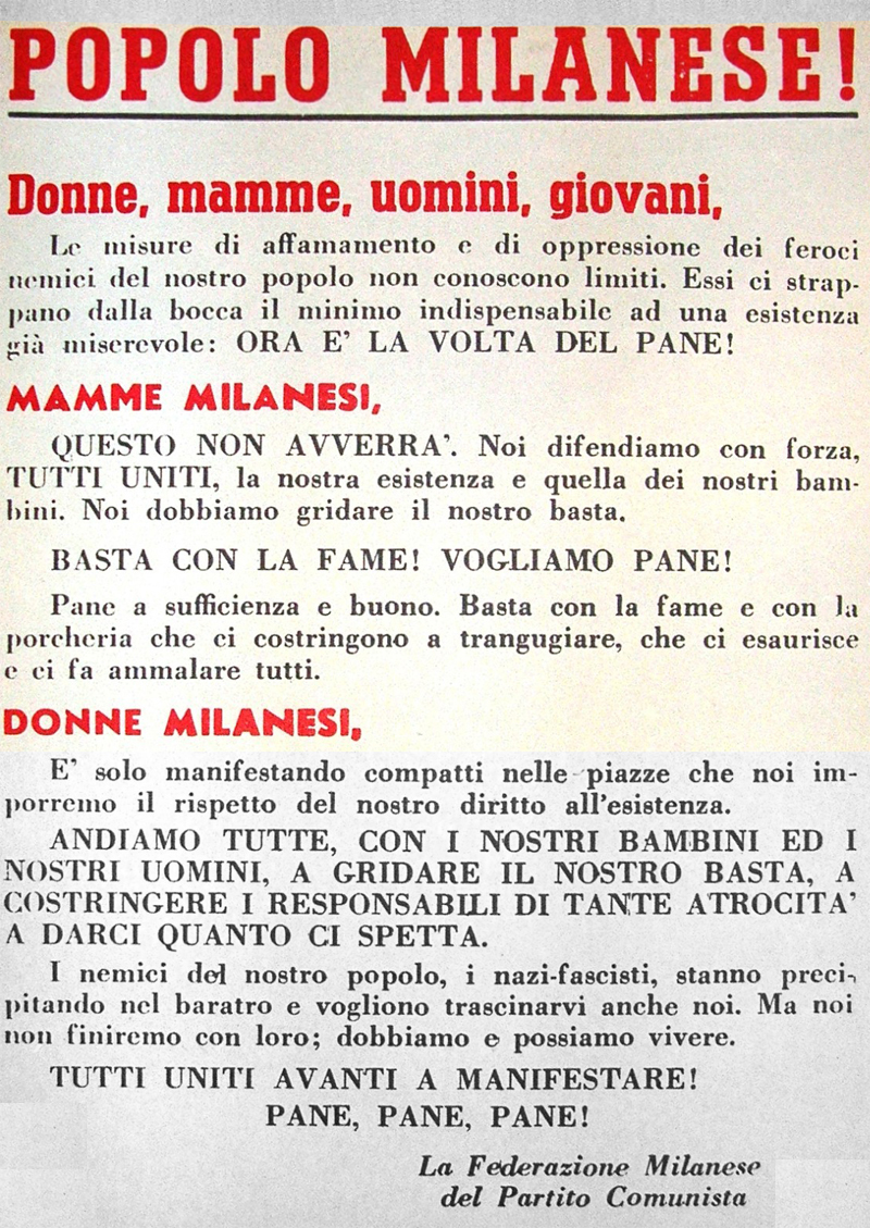 Durante il regime fascista gli scioperi, naturalmente, erano assolutamente vietati, ma con lo scoppio della guerra le condizioni di vita dei lavoratori e in generale della popolazione erano sensibilmente peggiorate, soprattutto a causa dell'aumento dei prezzi, e ciò provocò un profondo malcontento, che progressivamente portò a veri e propri momenti di protesta. Il 26 maggio 1942 a Sesto San Giovanni, alcune centinaia di donne manifestarono per chiedere la distribuzione degli alimenti, protestare contro la scarsità del cibo e l'inflazione devastante: le organizzatrici vennero fermate e portate nelle carceri di Milano. Sempre a Sesto, nella settimana di Natale alla Ercole Marelli il Comitato per la pace e la libertà diffuse dei volantini per la mobilitazione contro la guerra che trovarono il consenso di molti operai.