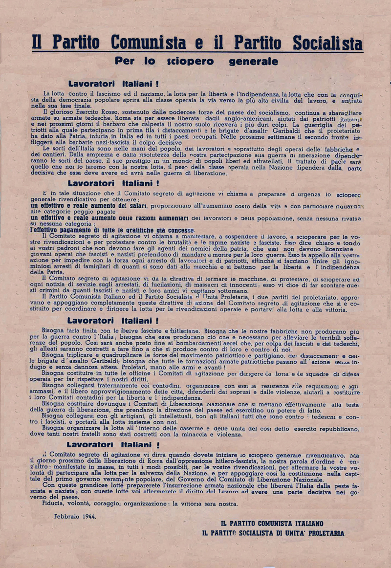da: Roberto Battaglia, Storia della resistenza italiana, Einaudi, 1964, pp. 184-190 Lo sciopero generale è una decisione fondamentale nella storia della resistenza.